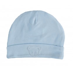Gant de toilette assorti. Parure de bain blanche avec un liseré bleu. Bébé sera trop craquant dans sa douce sortie de bain!